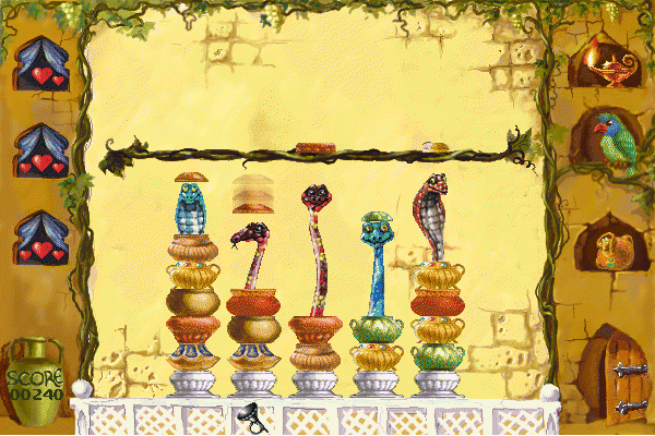 Цель игры - убрать все цветные горшки. Выберите любую стопку горшков и разбудите находящуюся там змею. Когда змея дотягивается до лозы, то верхний горшок из стопки исчезает.