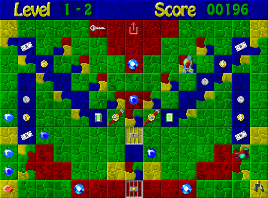 Одна из самых интересных игр этого сборника. Маленький воришка бегает по клеткам разных цветов и собирает все подряд - часы, деньги, драгоценности. После того, как он соберет все, он должен попасть на выход и перейти на следующий уровень. Вся сложность игры заключается в том, что с клетки одного цвета можно перейти только на клетку такого же цвета и только по вертикали или горизонтали. Если на пути воришки оказываются клетки другого цвета, он их перепрыгивает. Для перехода на клетку другого цвета (там ведь тоже "добро" лежит) игрок должен использовать разноцветные клетки, т.е. окрашенные сразу в несколько цветов. С каждым уровнем лабиринты усложняются, вводятся ключи от переходов, рубильники, открывающие двери, и прочие "прелести".