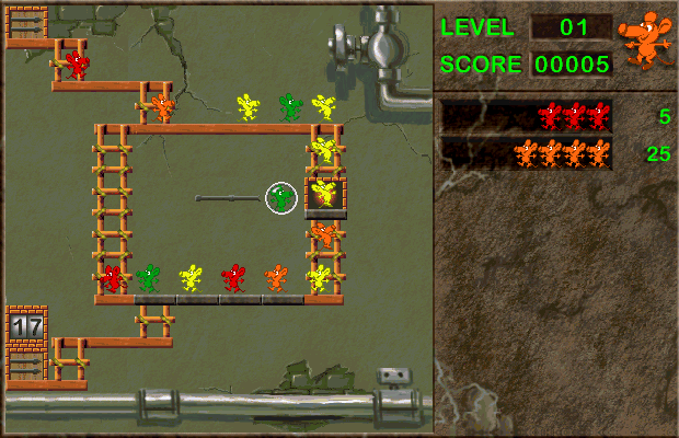 Если перевести это название на русский язык, получится "Крысиный Покер", как бы ни странно это звучало. Вам придется собирать маленьких веселых разноцветных крысят по группам. Как только вы соберете трех, четырех или более крысят одного цвета, они автоматически начинают двигаться к выходу. Вся сложность заключается в том, что выскакивают крысята довольно неожиданно. Для того, чтобы вы могли как-то варьировать их очередность, предусмотрены различные ловушки, между которыми можно переключаться, передвигать пойманных крысят и так далее. Все -только для достижения одной единственной цели, о которой уже говорилось выше. Игра фантастически увлекательна, разобравшись, что к чему, вы долго не сможете от нее оторваться, - проверено на собственном опыте.